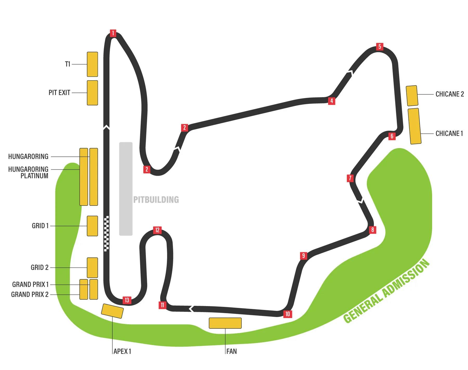 Unkarin GP kilpaillaan Hungaroring-radalla, joka sijaitsee noin 20 kilometriä Budapestin keskustasta itään. Ratakuljetukset hotelleilta la ja su.